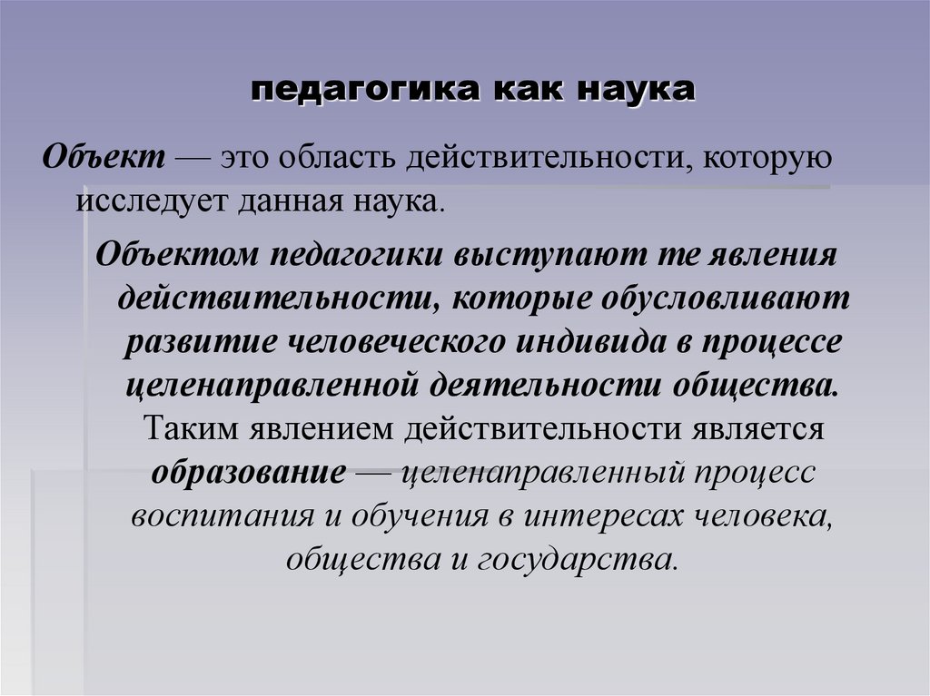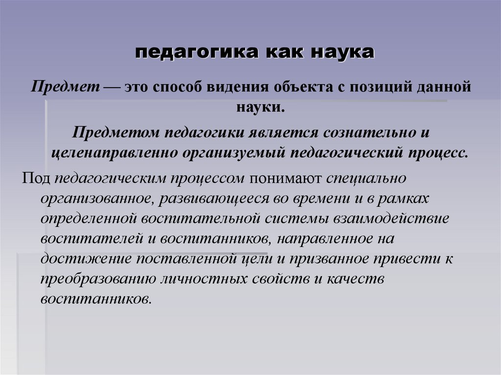 педагогика как наукаПредмет — это способ видения объекта с позиций данной