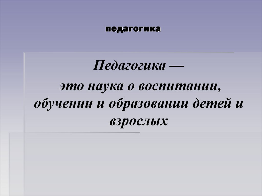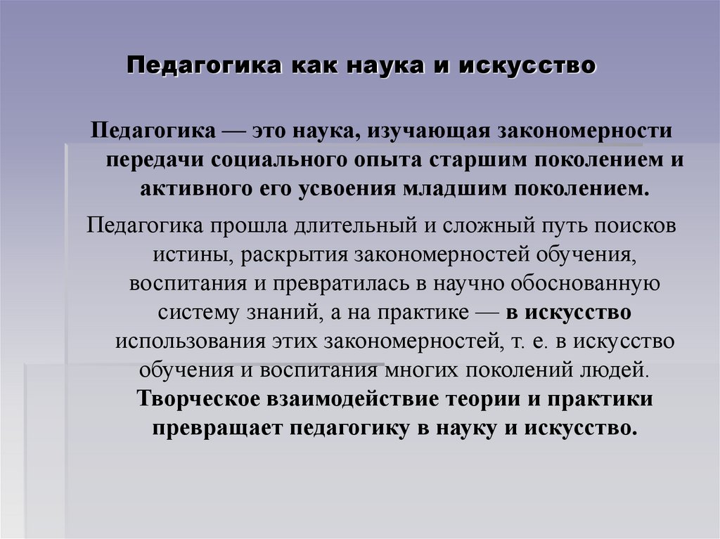 Педагогика как наука и искусствоПедагогика — это наука, изучающая закономерности