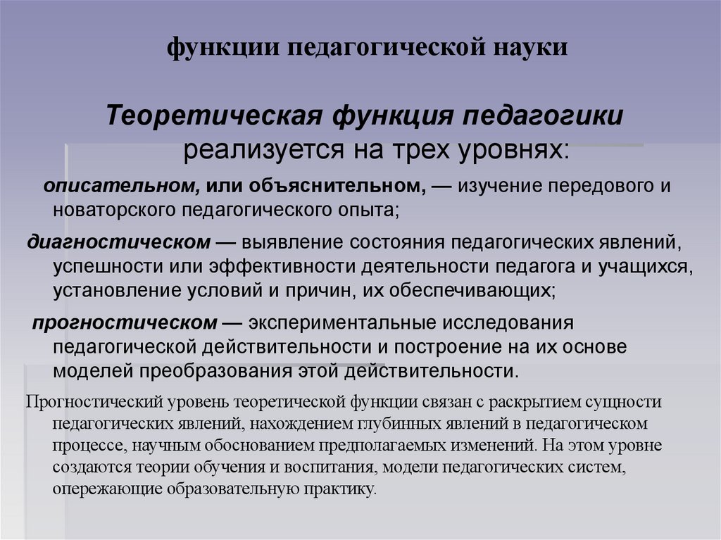 Прогностический уровень теоретической функции связан с раскрытием сущности