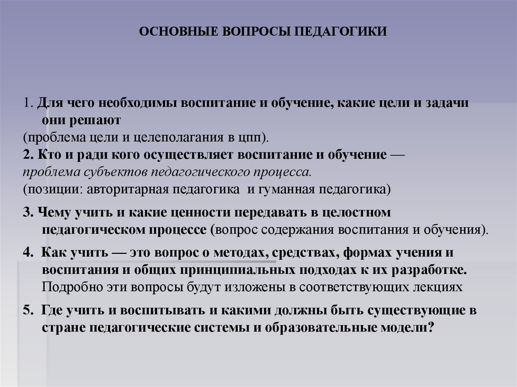 ОСНОВНЫЕ ВОПРОСЫ ПЕДАГОГИКИ1. Для чего необходимы воспитание и обучение, какие цели и задачи