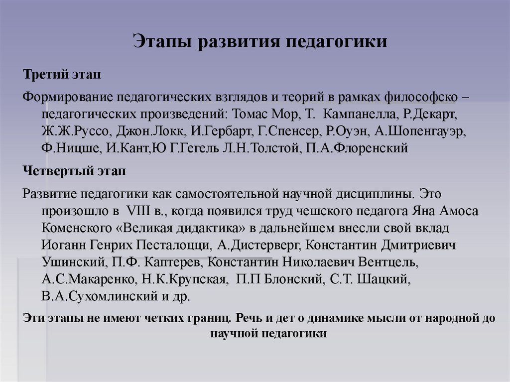 Развитие педагогики как самостоятельной научной дисциплины. Это