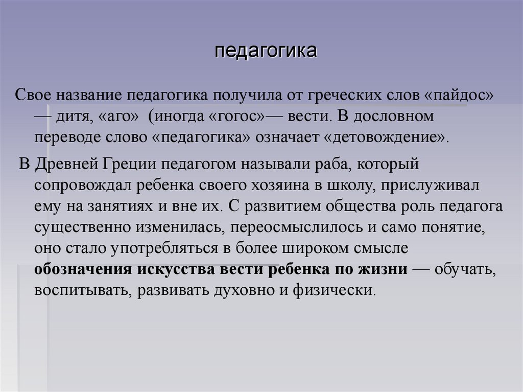 педагогикаСвое название педагогика получила от греческих слов «пайдос»