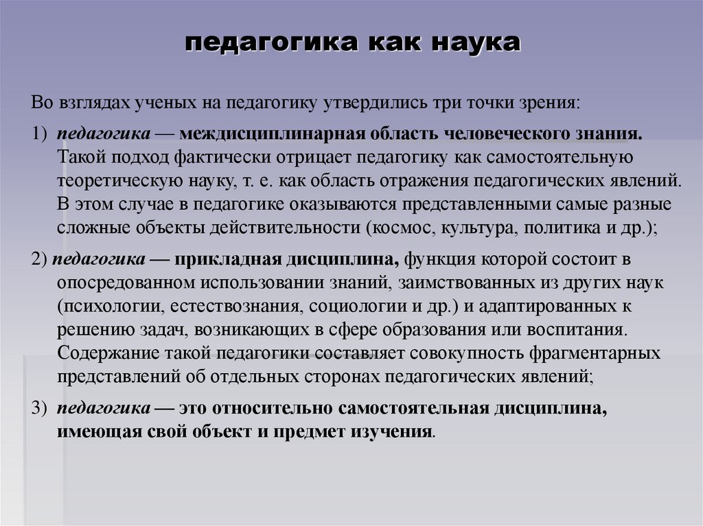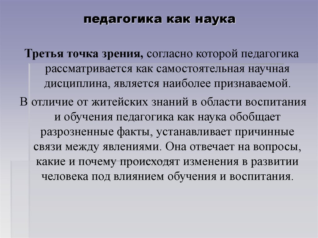 педагогика как наукаТретья точка зрения, согласно которой педагогика