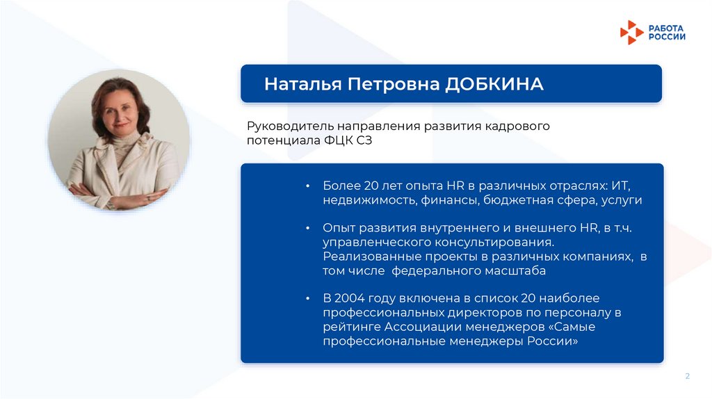 Наталья Петровна ДОБКИНАРуководитель направления развития кадрового
