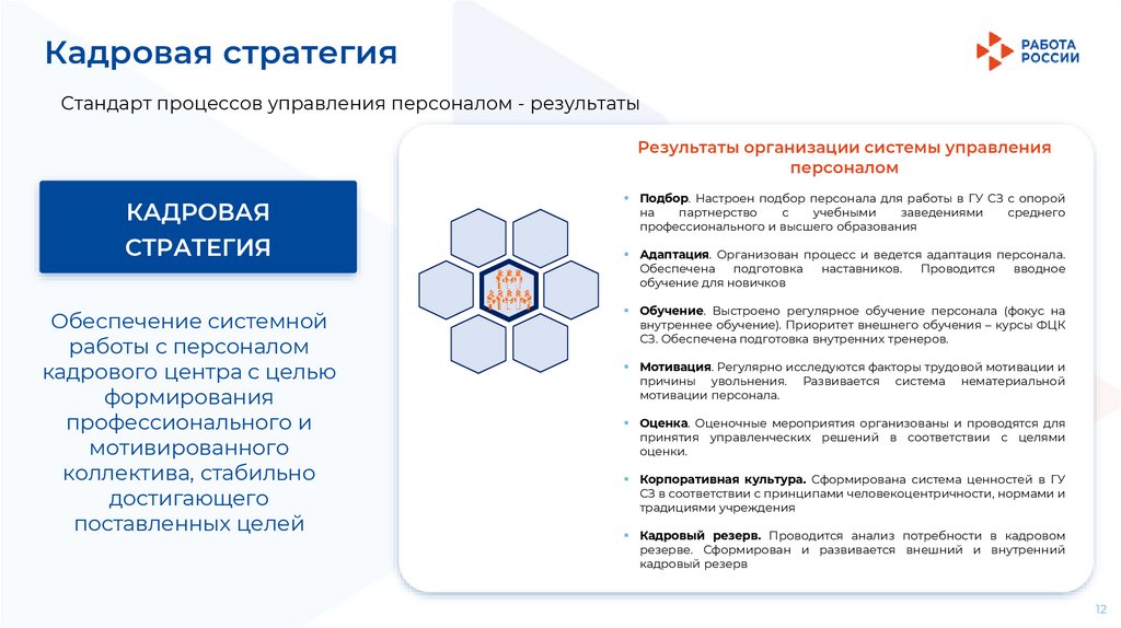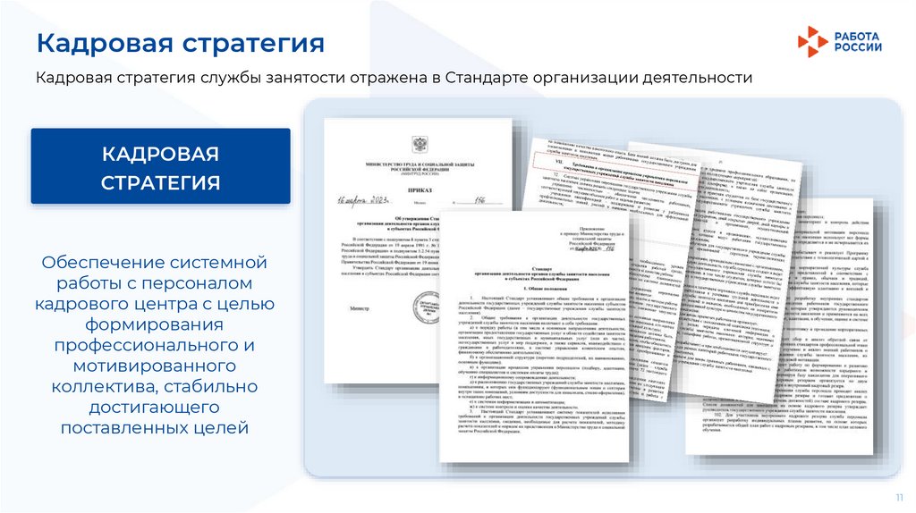 Кадровая стратегияКадровая стратегия службы занятости отражена в Стандарте организации деятельности