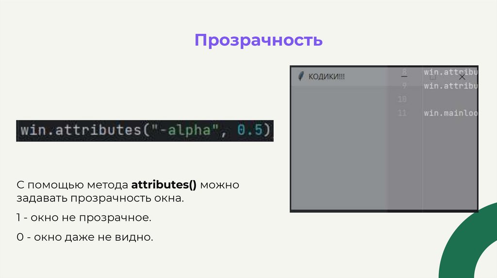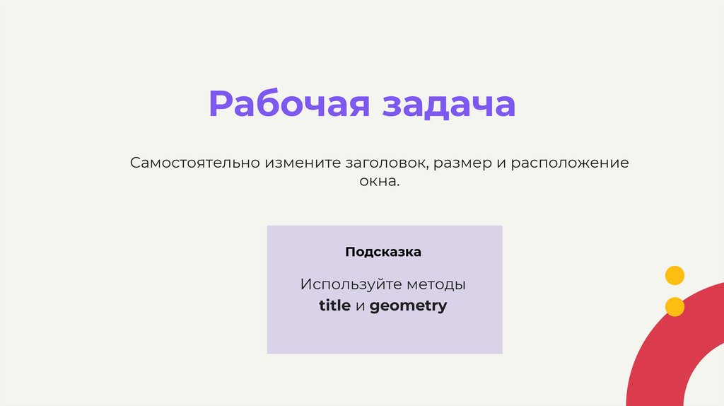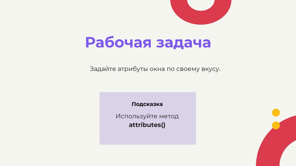 Рабочая задачаЗадайте атрибуты окна по своему вкусу.