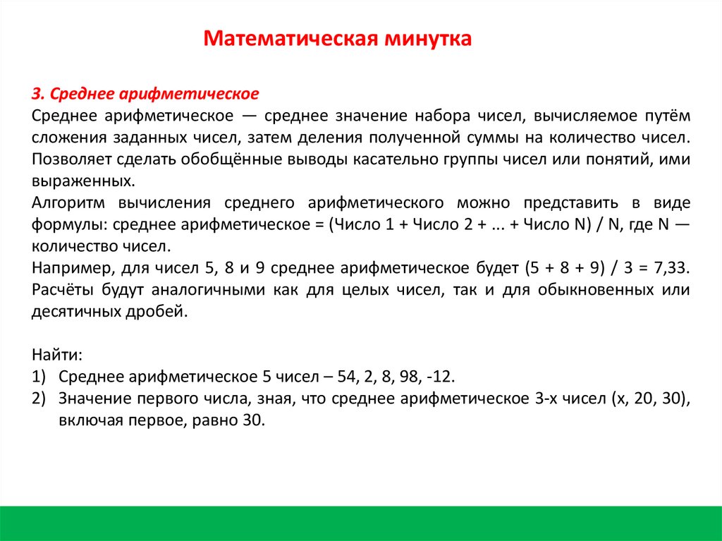 Математическая минутка3. Среднее арифметическое