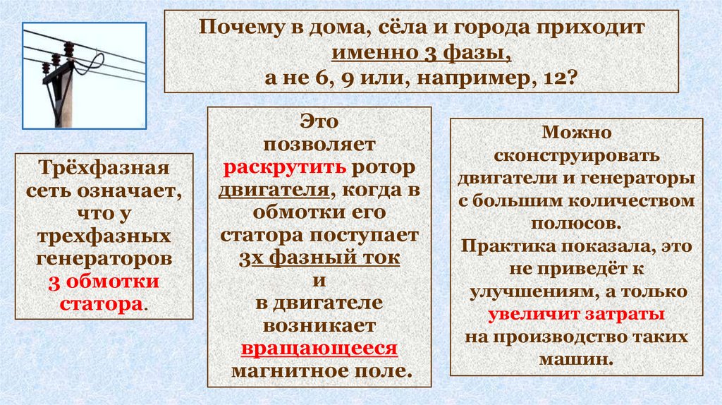 Почему в дома, сёла и города приходитименно 3 фазы,