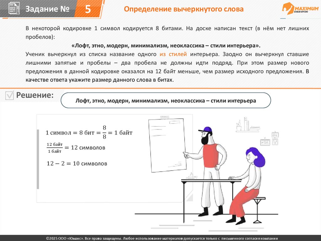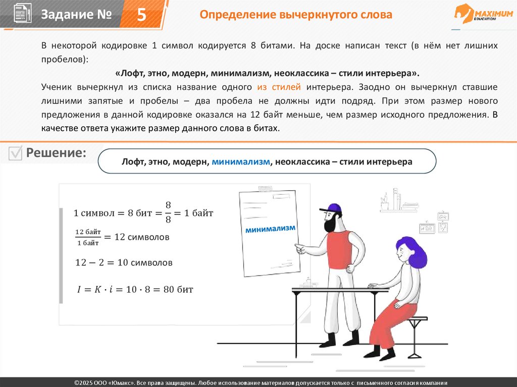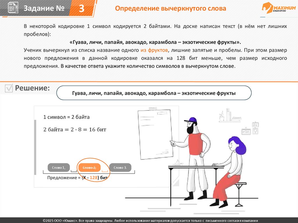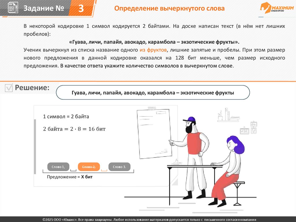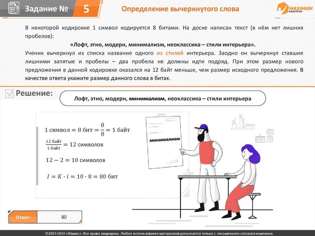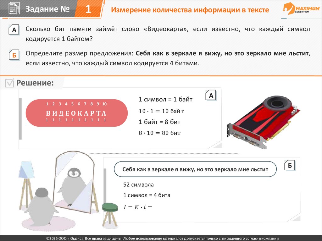 Сколько бит памяти займёт слово «Видеокарта», если известно, что каждый символ