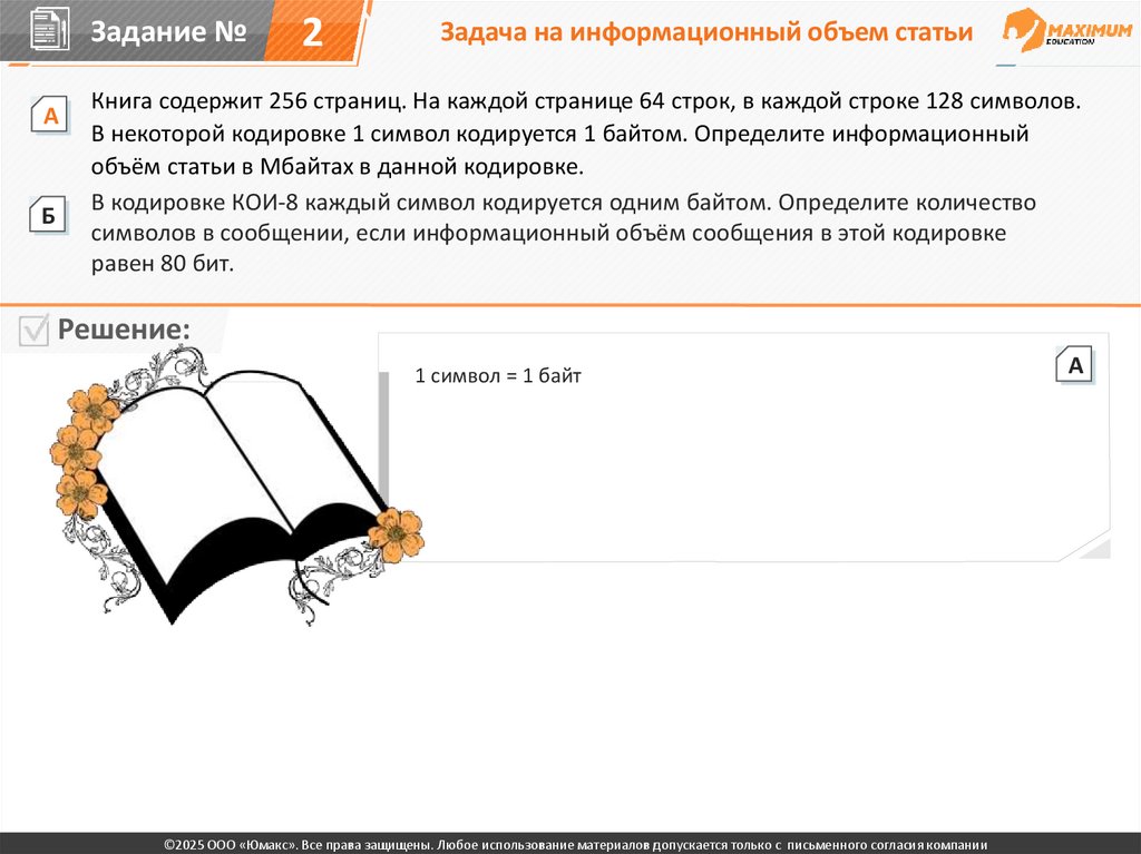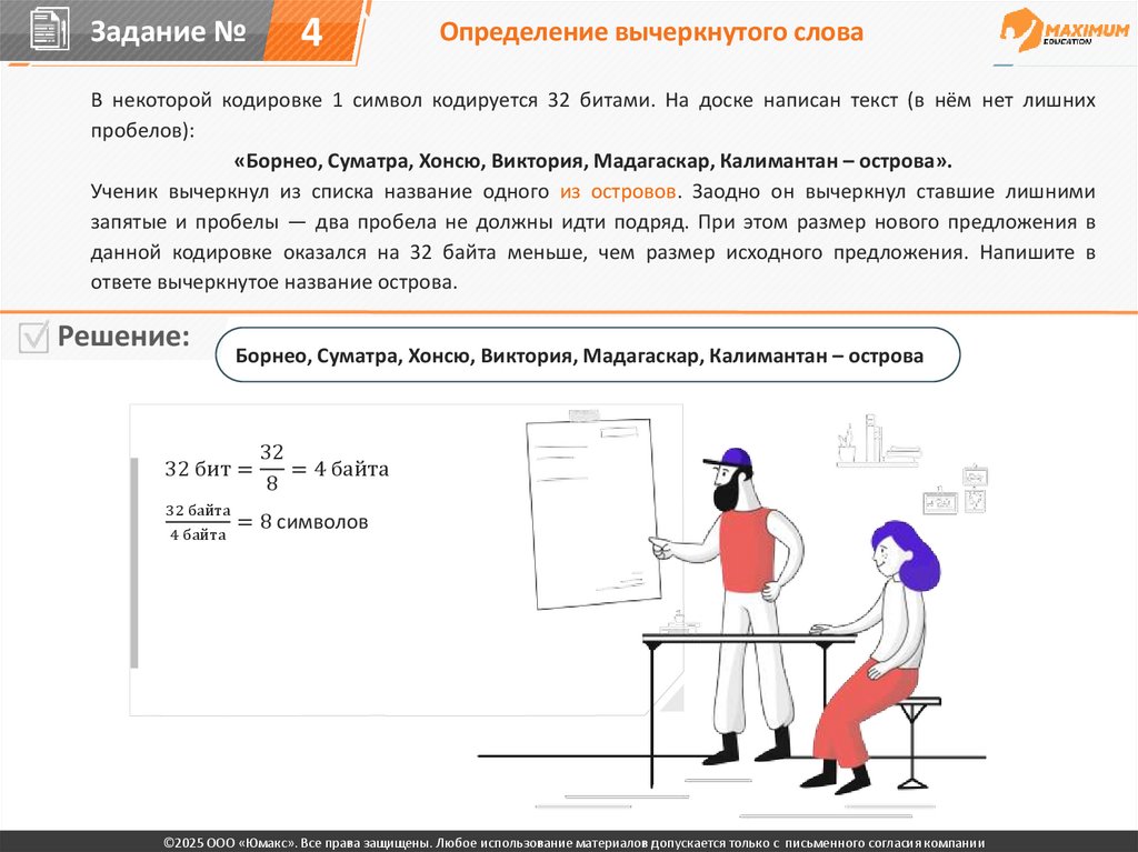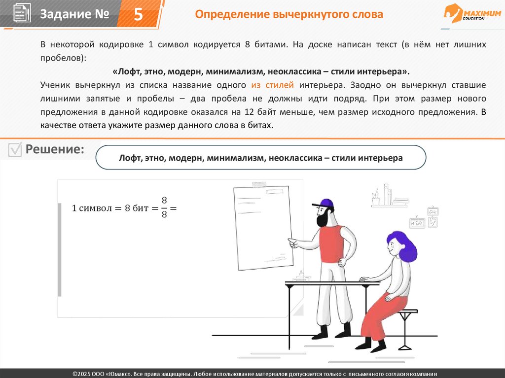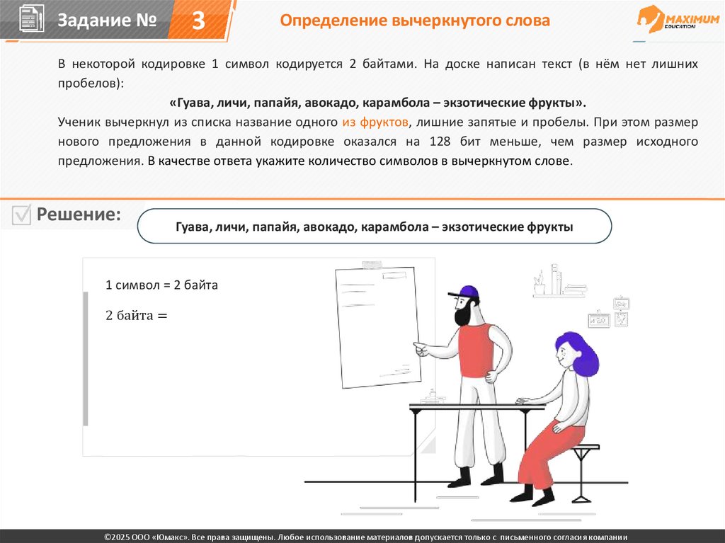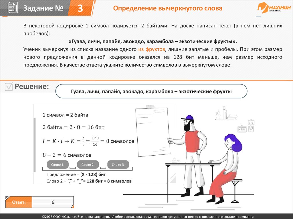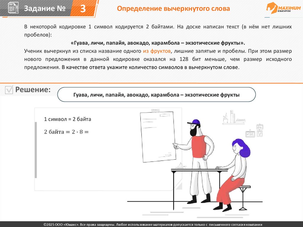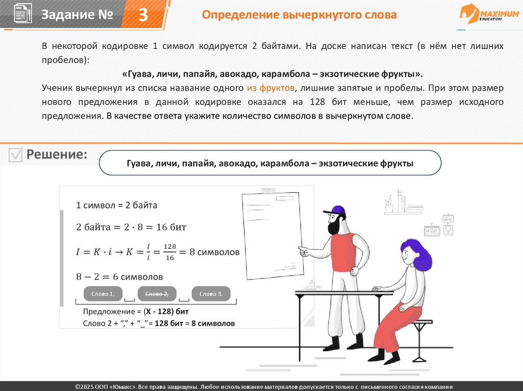 Сколько бит памяти займёт слово «Видеокарта», если известно, что каждый символ