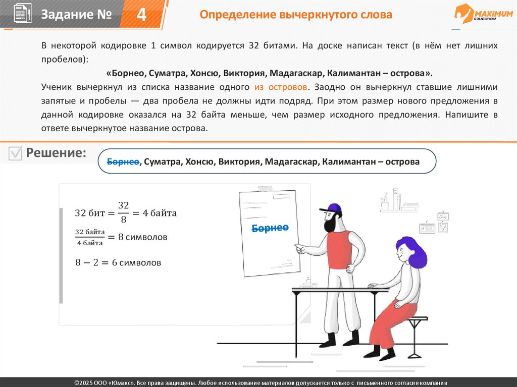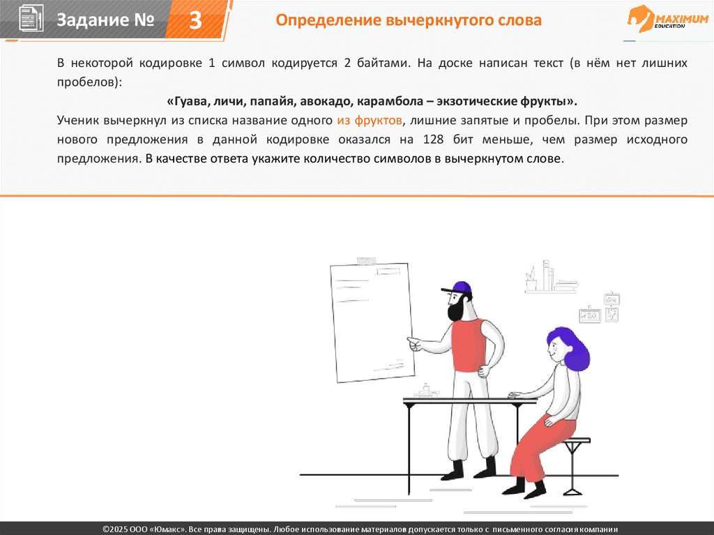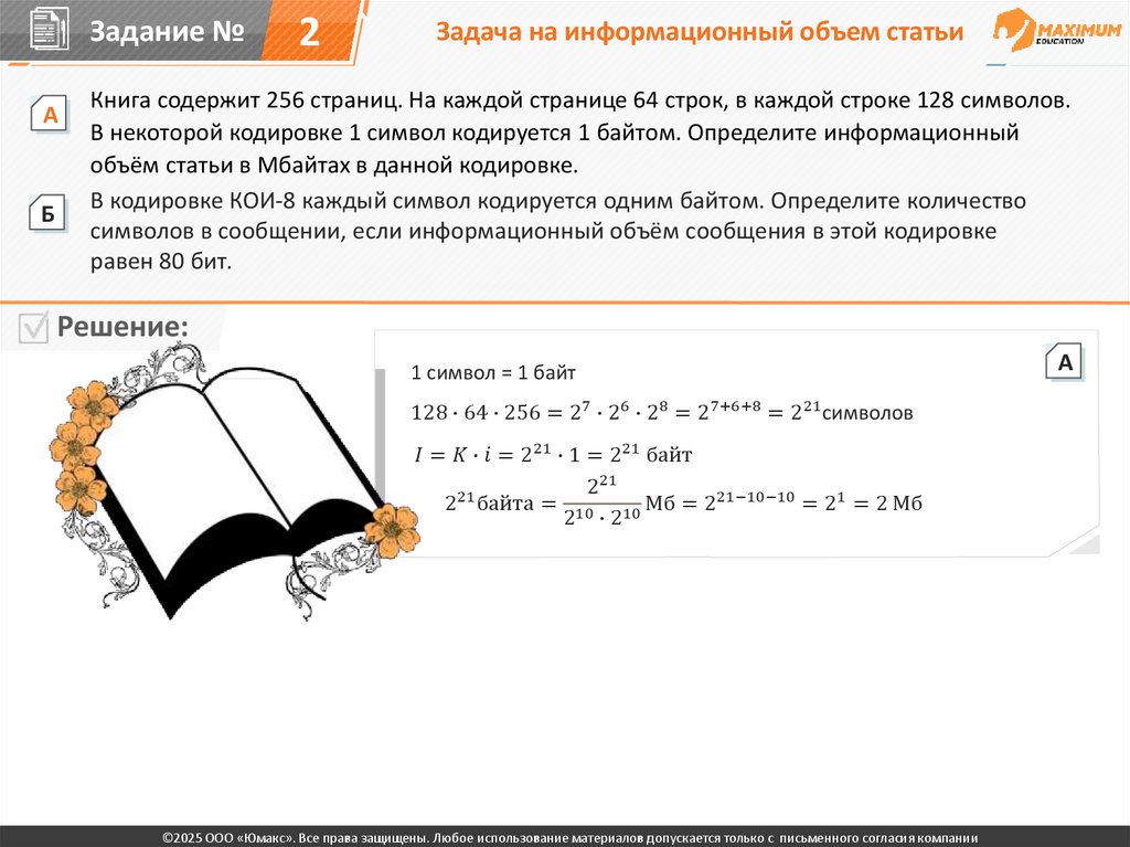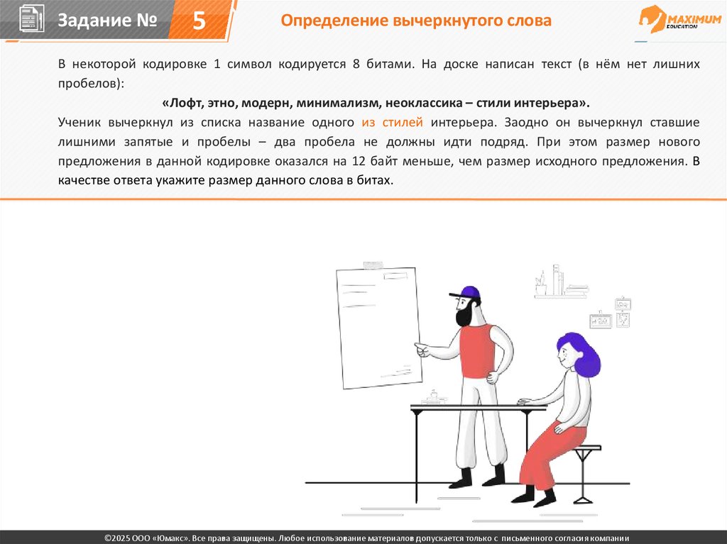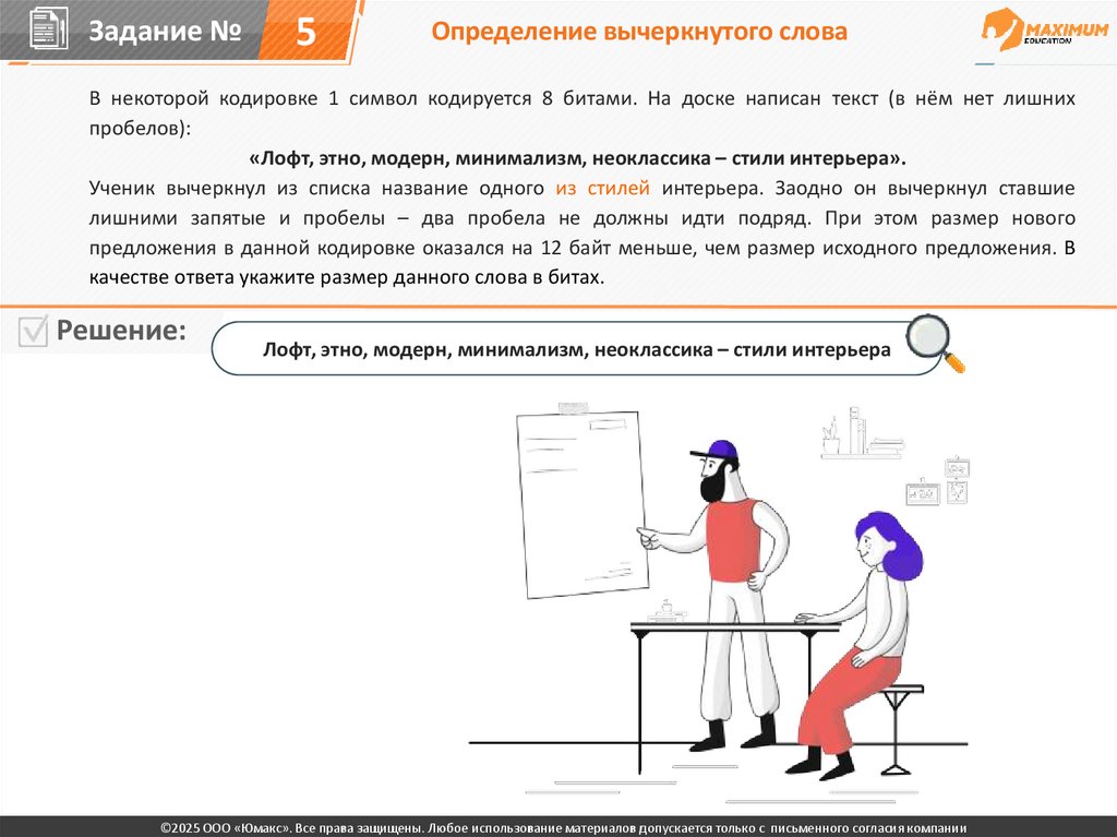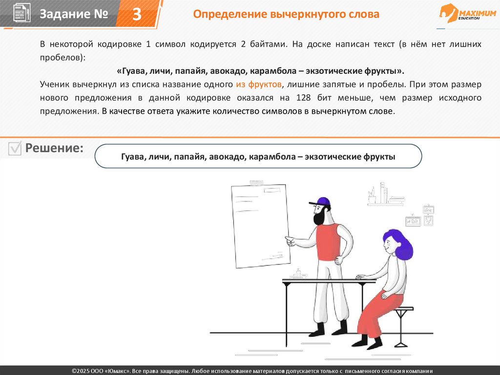 Сколько бит памяти займёт слово «Видеокарта», если известно, что каждый символ