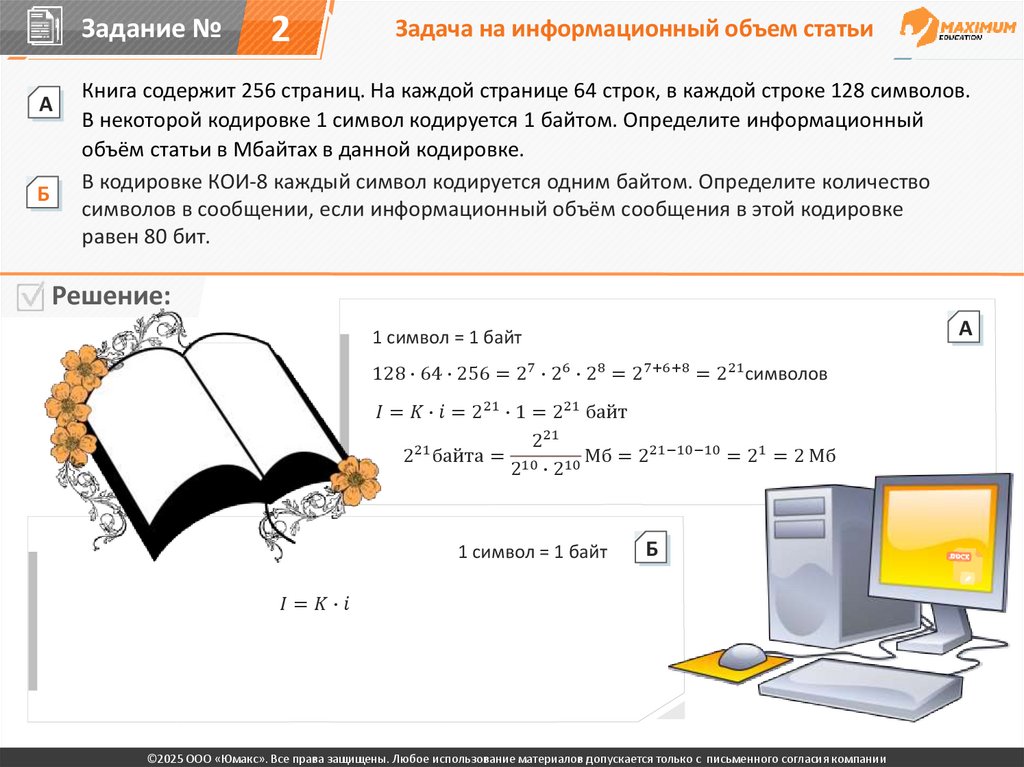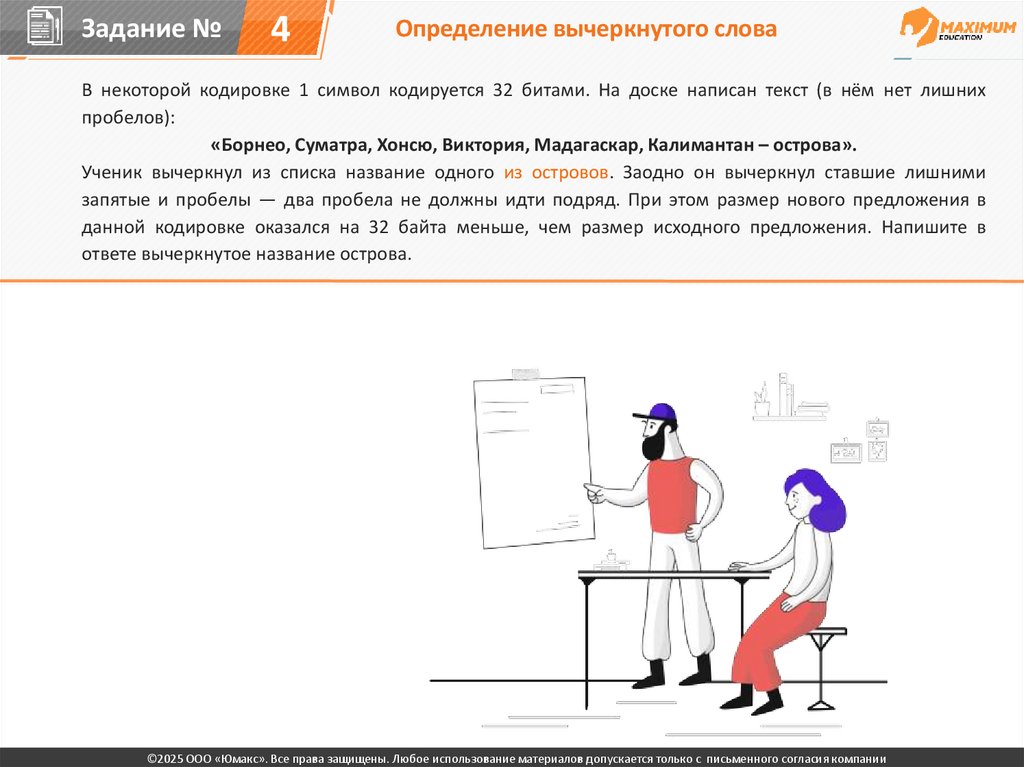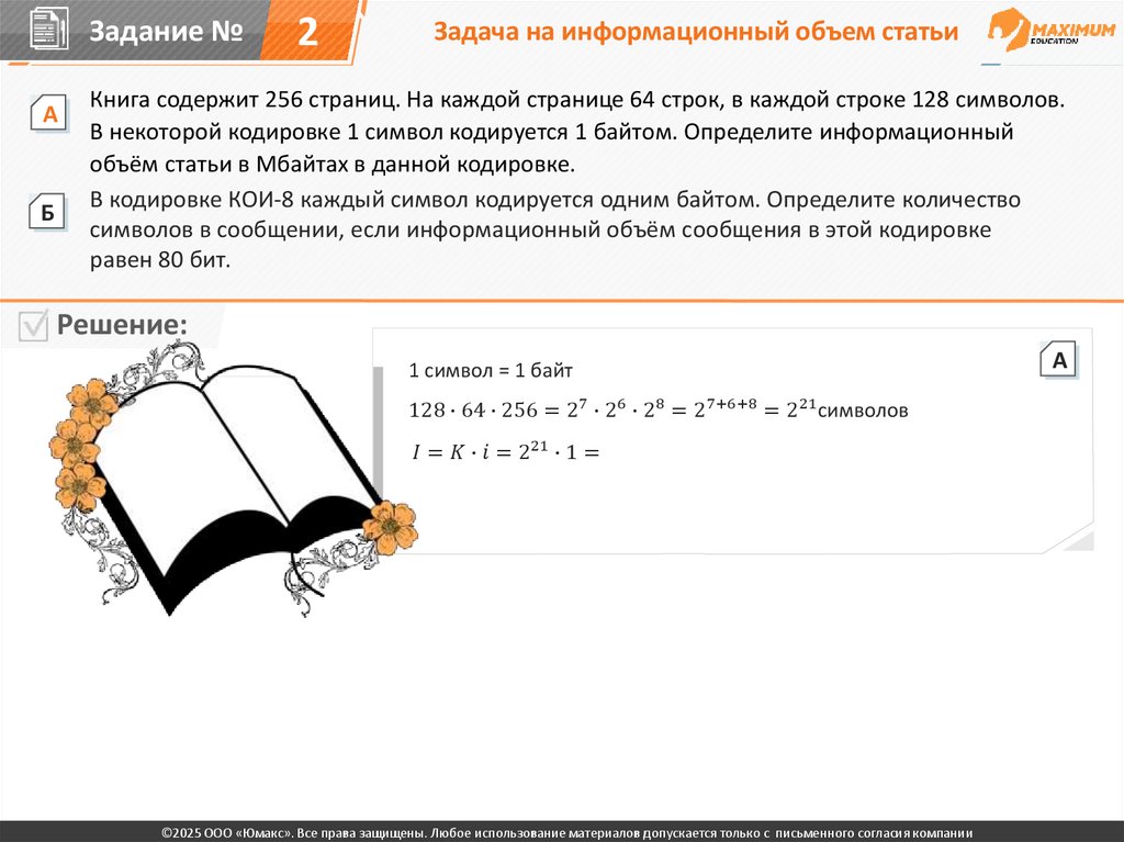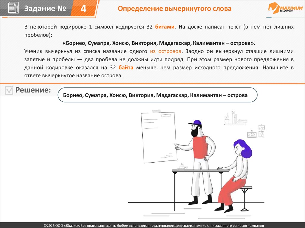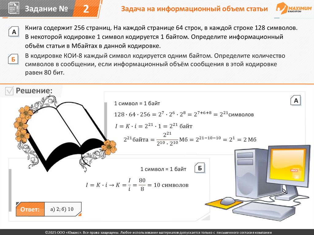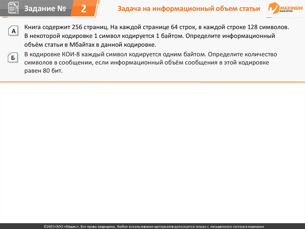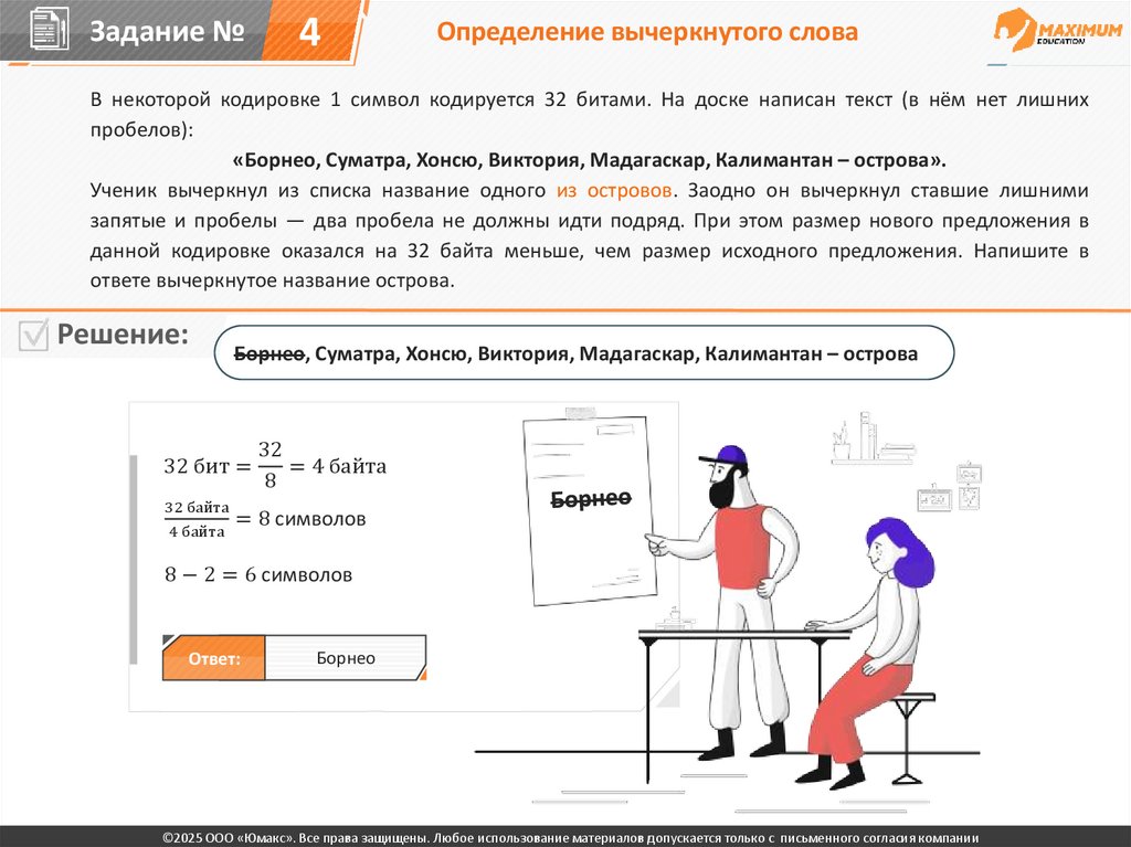 Сколько бит памяти займёт слово «Видеокарта», если известно, что каждый символ