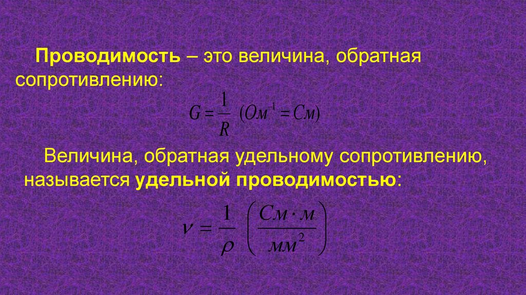 Проводимость – это величина, обратнаясопротивлению: