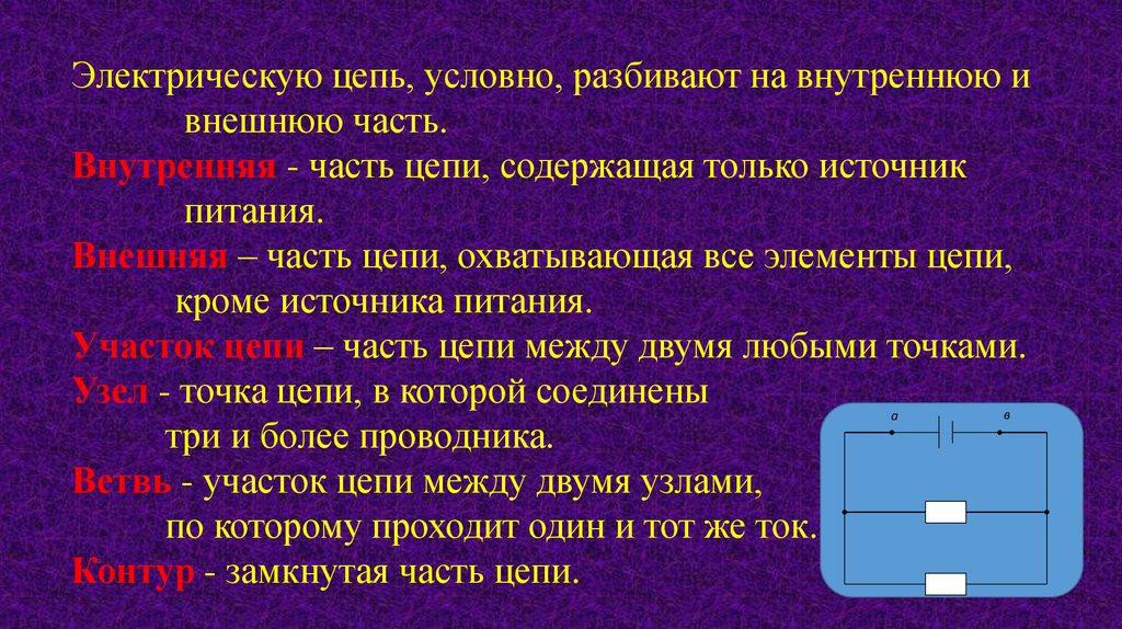 Электрическую цепь, условно, разбивают на внутреннюю ивнешнюю часть.