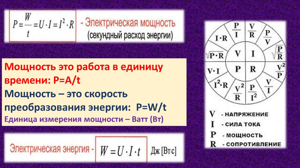 Единица измерения мощности – Ватт (Вт)