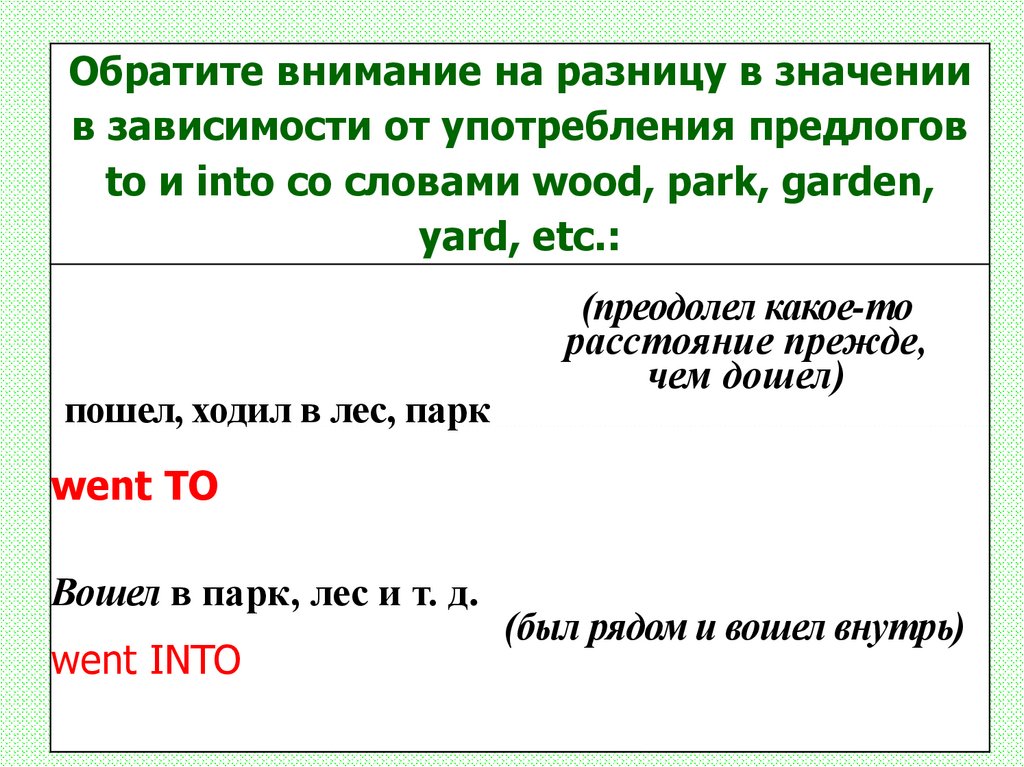 • Предлоги направления:to — к, на, в; towards — в направлении, к;