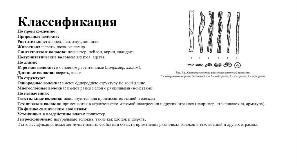 Эта классификация помогает лучше понять свойства и области применения различных волокон в текстильной и других отраслях.