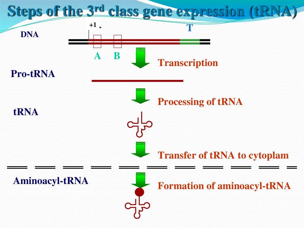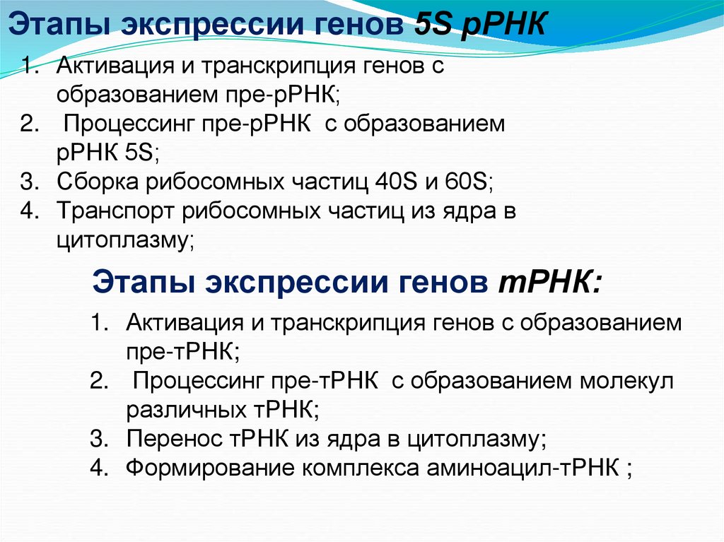 Этапы экспрессии генов 1-го класса1. Активация и транскрипция генов с