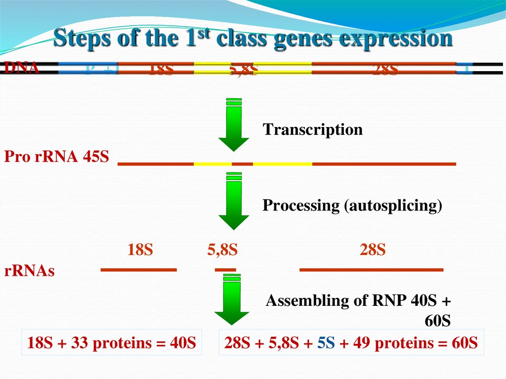 Гены I класса - Гены, кодирующиепоследовательность нуклеотидов 28S, 18S, 5,8S