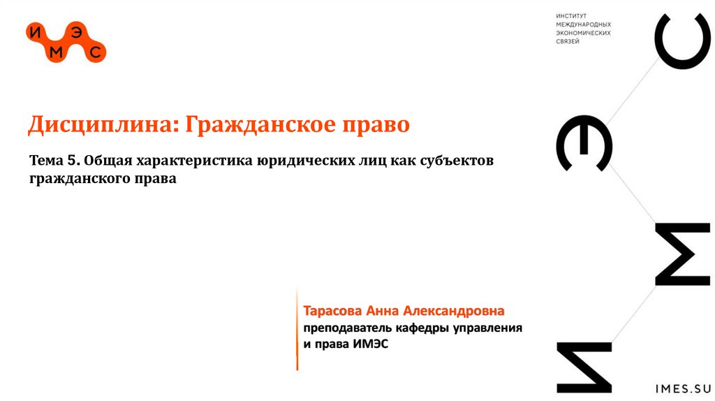 Дисциплина: Гражданское правоТема 5. Общая характеристика юридических лиц как субъектов