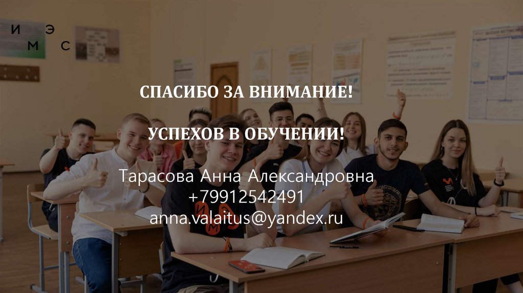 СПАСИБО ЗА ВНИМАНИЕ!УСПЕХОВ В ОБУЧЕНИИ!
