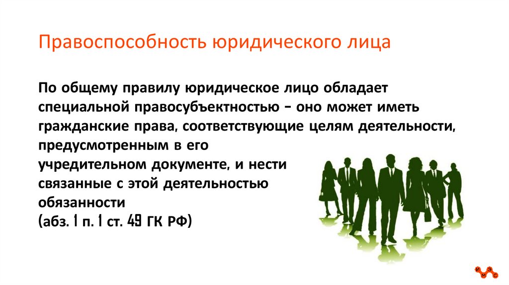 Правоспособность юридического лицаПо общему правилу юридическое лицо обладает