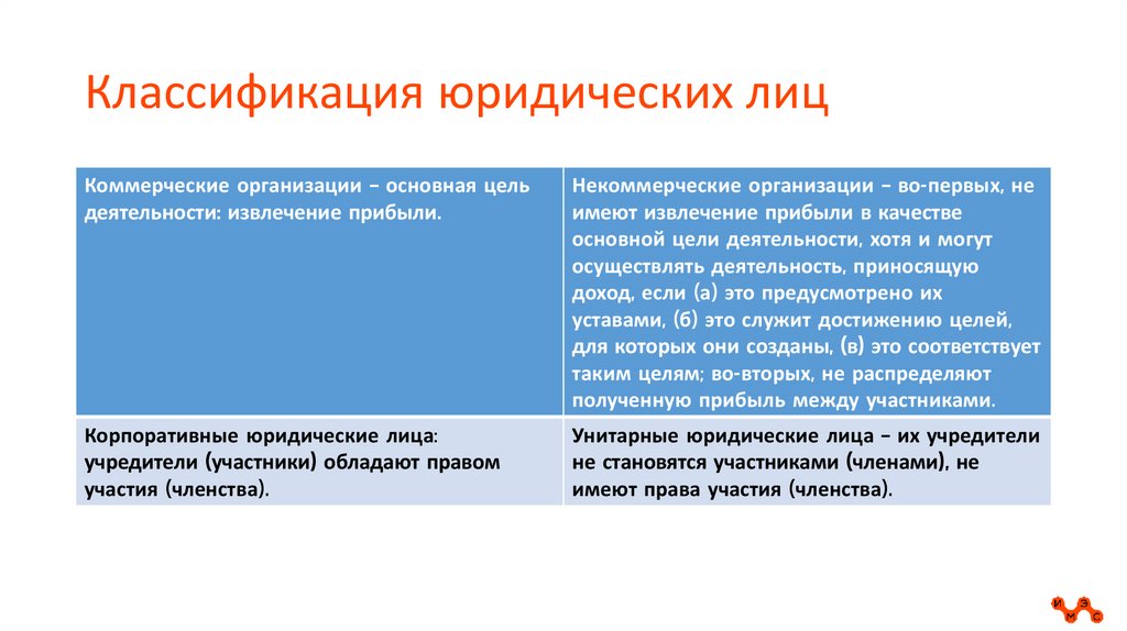 для коммерческих (п. 2 ст. 50 ГК) и для некоммерческих