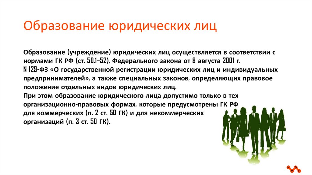 Образование юридических лицОбразование (учреждение) юридических лиц осуществляется в соответствии с