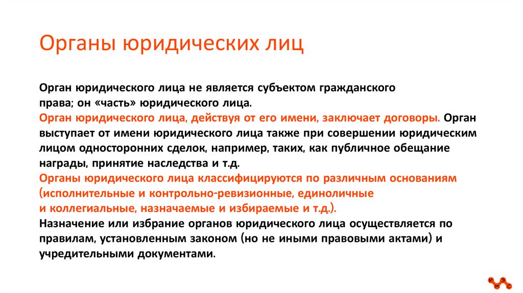 Органы юридических лицОрган юридического лица не является субъектом гражданского