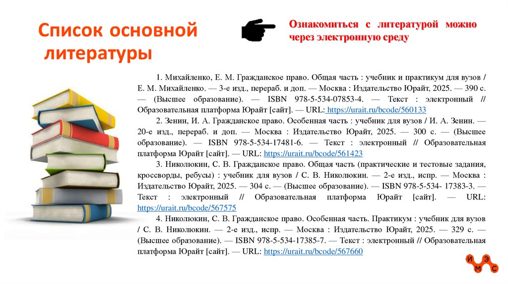 1. Михайленко, Е. М. Гражданское право. Общая часть : учебник и практикум для вузов /