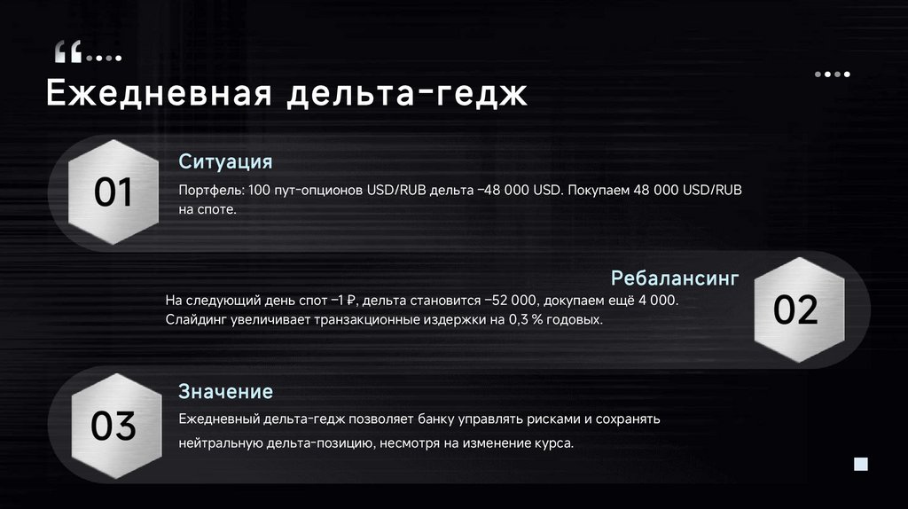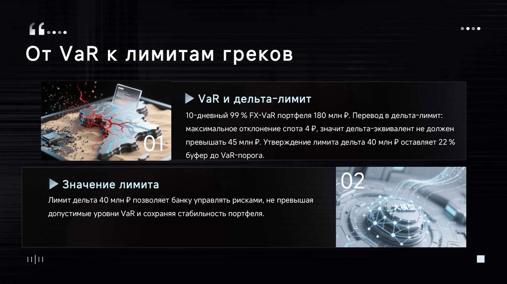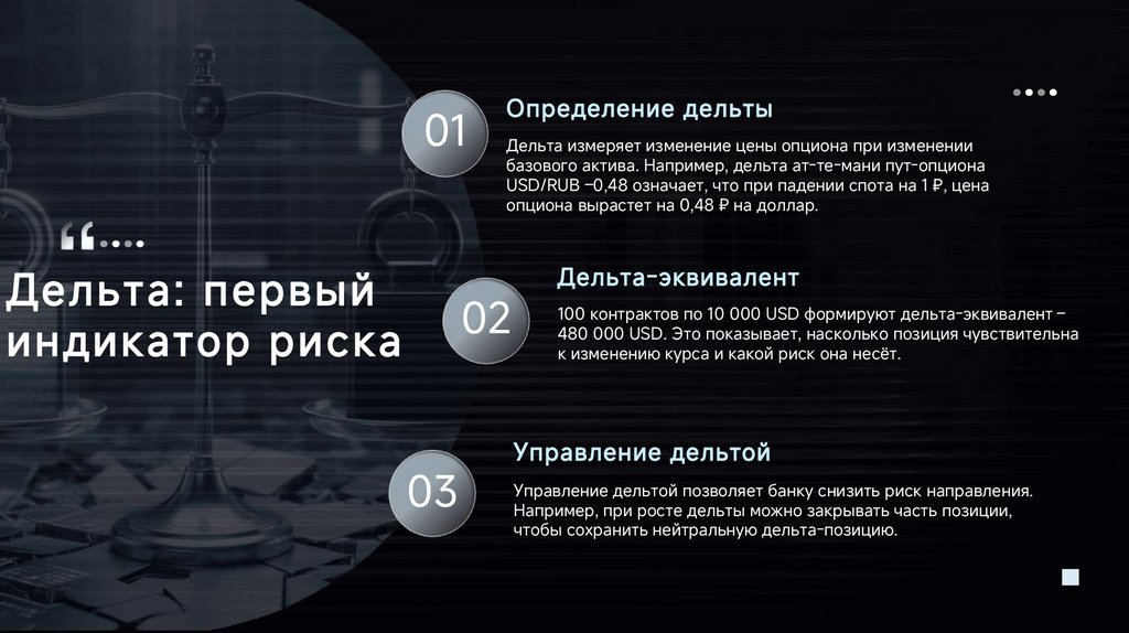 Дельта 40 млн ₽, гамма 10 млн USD, вега 0,5 млн ₽, тета –1 млн