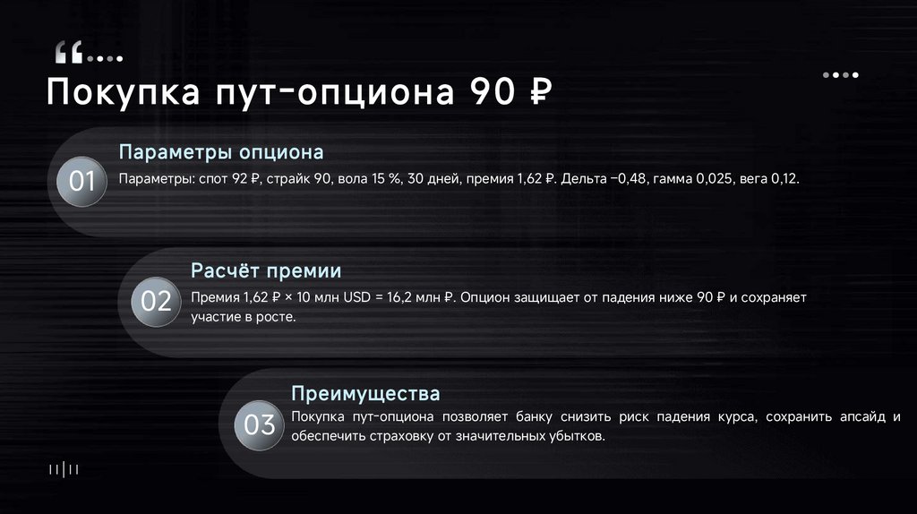 USD/RUB со страйком 90 ₽ и премией 1,8 % (1,62 млн ₽) обеспечивает страховку