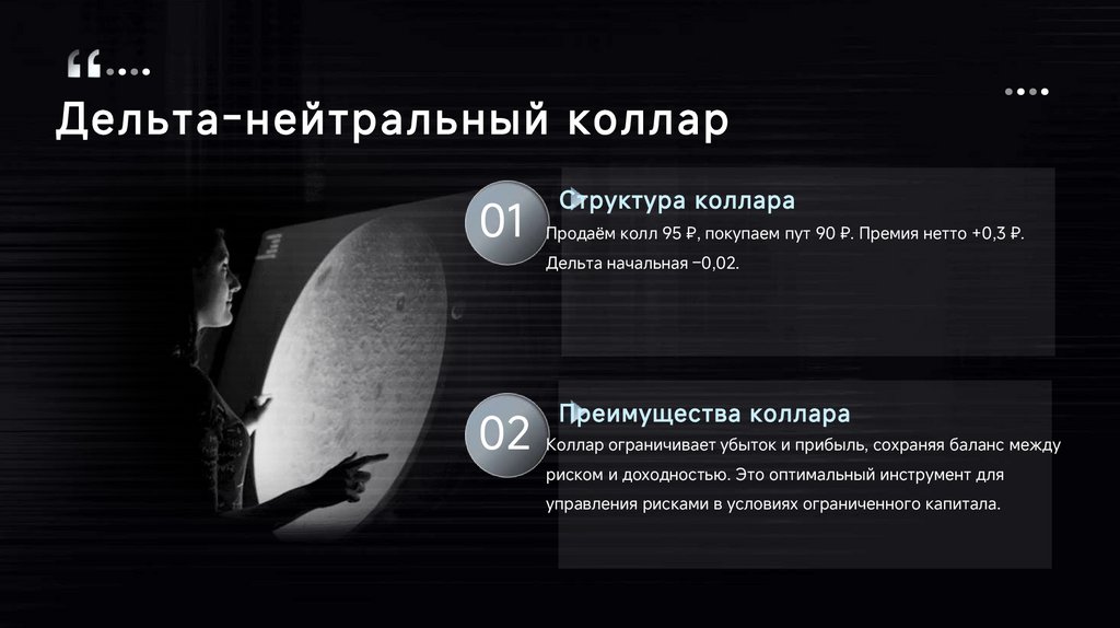 Чистый пут – высокая премия, ноль апсайд-риск; коллар – нулевая премия, ограниченный апсайд;