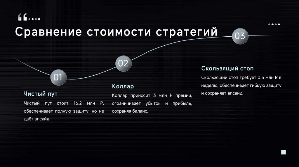 Выбор стратегии зависит от сценария. Например, коллар предпочтителен при