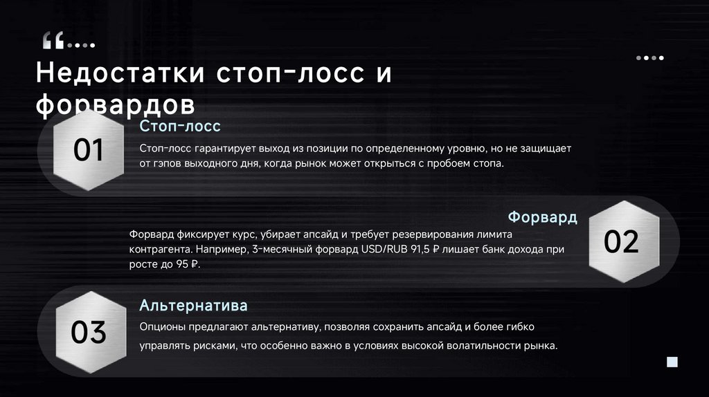контрагента. Например, 3-месячный форвард USD/RUB 91,5 ₽ лишает банк дохода при