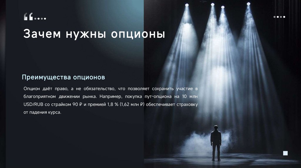 благоприятном движении рынка. Например, покупка пут-опциона на 10 млн