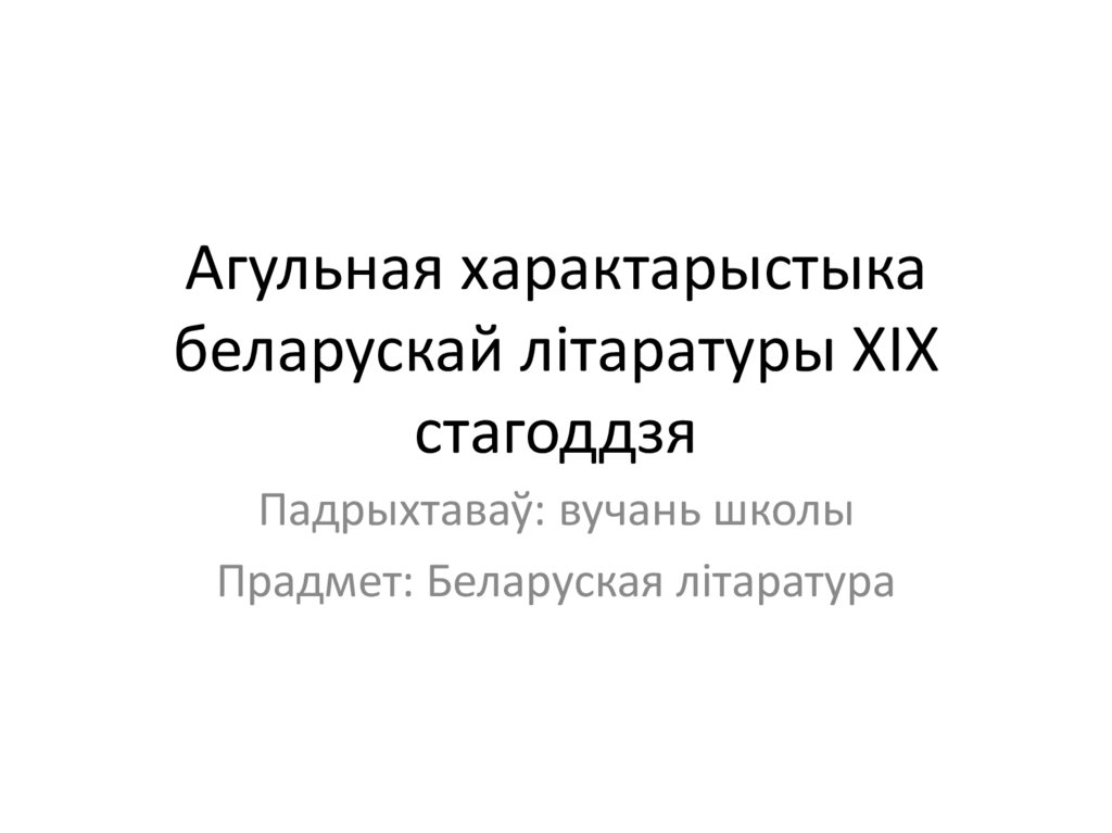 Агульная характарыстыкабеларускай літаратуры XIX