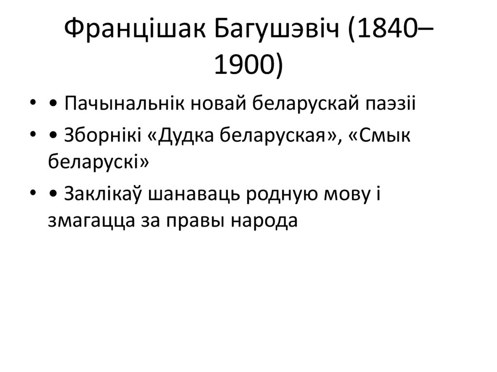 • • Канец — узнікненне класікаў беларускай