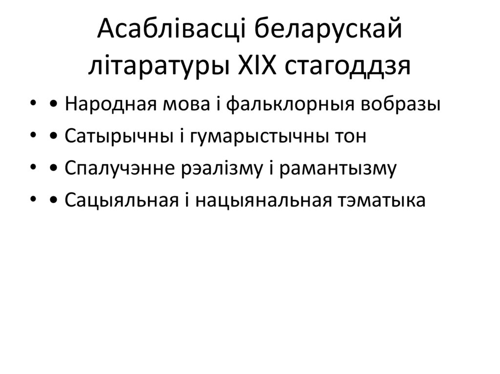 Асаблівасці беларускайлітаратуры XIX стагоддзя