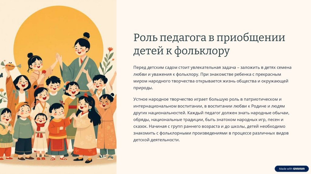 любви и уважения к фольклору. При знакомстве ребенка с прекрасным