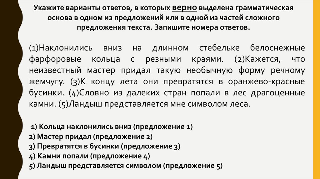 предложения текста. Запишите номера ответов.