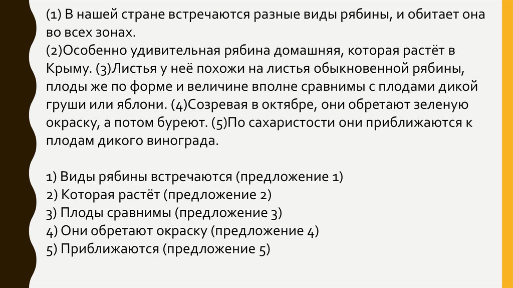 1) Виды рябины встречаются (предложение 1)