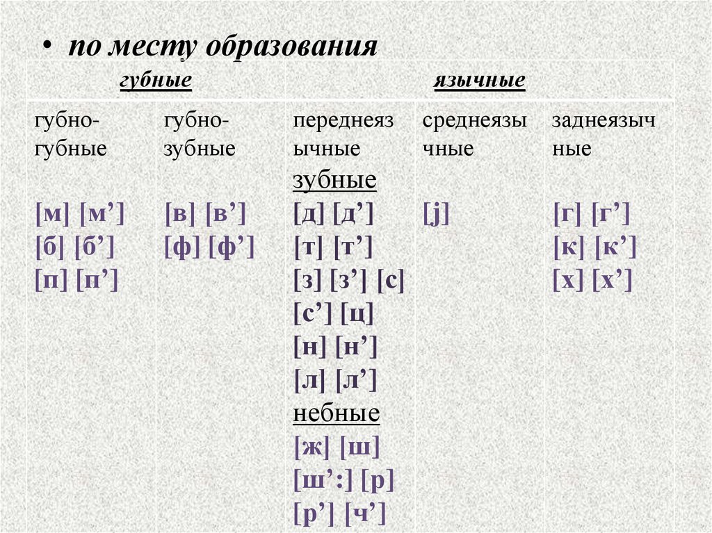 5. Классификация согласных звуков