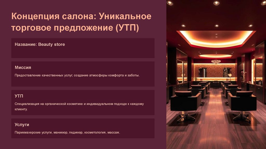 Концепция салона: Уникальноеторговое предложение (УТП)