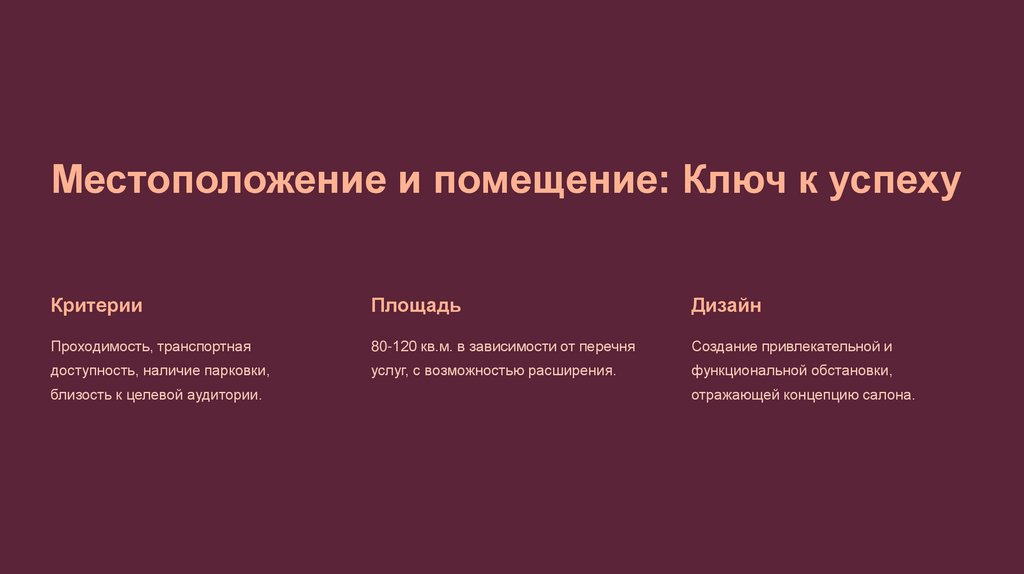 создания успешного салона красоты. Мы верим в вашу идею и готовы помочь