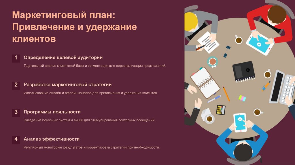 Внедрение бонусных систем и акций для стимулирования повторных посещений.