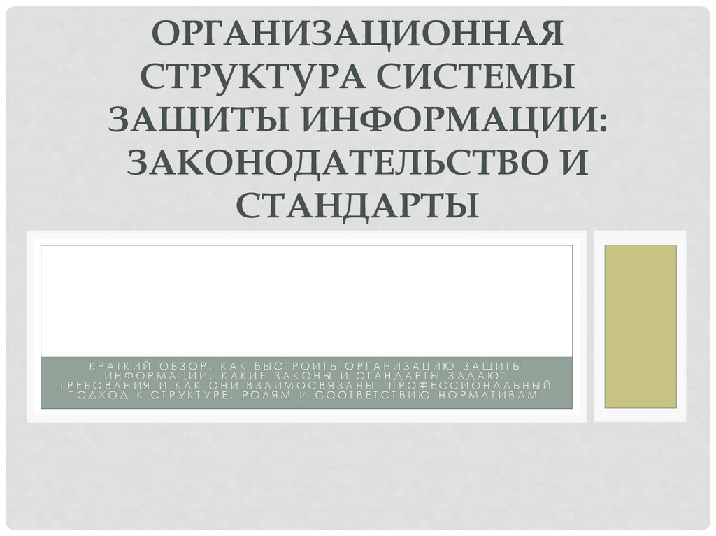 1. Организационная структура системы защиты информации: законодательство и стандарты