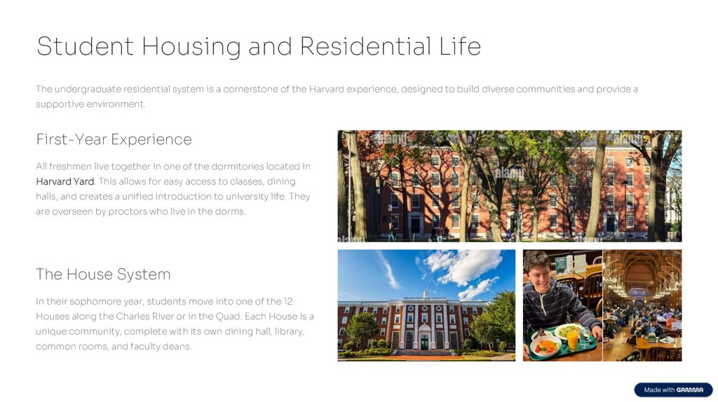 Student Housing and Residential LifeThe undergraduate residential system is a cornerstone of the Harvard experience, designed to build diverse communities and provide a