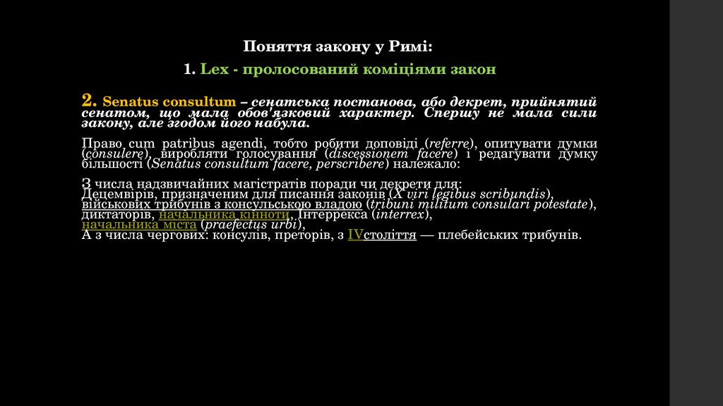 2. Senatus consultum – сенатська постанова, або декрет, прийнятий