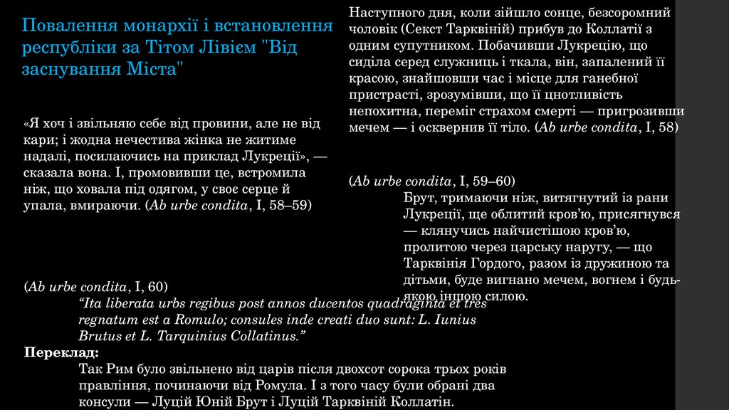 упала, вмираючи. (Ab urbe condita, I, 58–59)